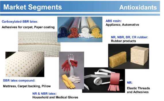 การใส่ Anti-Oxidant  ในสูตรยาง ที่ Dosage ประมาณ 0.5-0.7 phr เนื่องจากโครงสร้าง Wingstay L เป็นแบบ Polyphenol สามารถลด ปริมาณการใช้ลงมาครึ่งนึงจาก Antioxidant ที่เป็นโครงสร้างแบบ Monophenol ที่เจอในตลาดได้